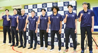 プロバスケットボールB1リーグ所属の横浜ビー・コルセアーズは7月3日、練習拠点のたきがしら会館=磯子区=で新体制発表記者会見を開いた。昨シーズンから9人の選手が継続契約し、日本代表歴のある安藤誓哉選手ら3人が新たに加入。昨季は届かなかった「チャンピオンシップ出場」を再び目指す。