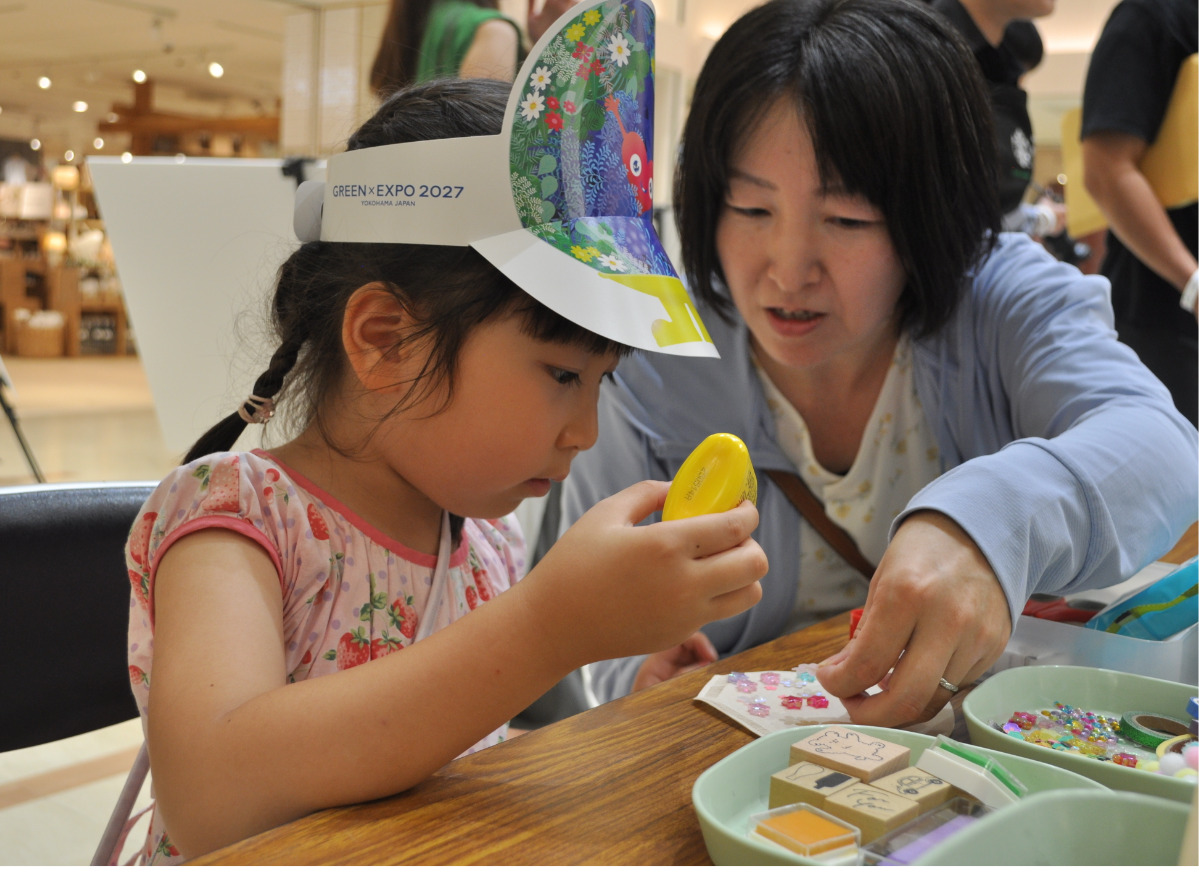 旧上瀬谷通信施設(横浜市旭区、瀬谷区)が会場のGREEN×EXPO 2027(国際園芸博覧会)の開催600日前に合わせた催しが、7月23日から29日まで相鉄ライフ三ツ境で実施。パネル展や消臭剤を作るワークショップがあり、親子連れなどで賑わった。