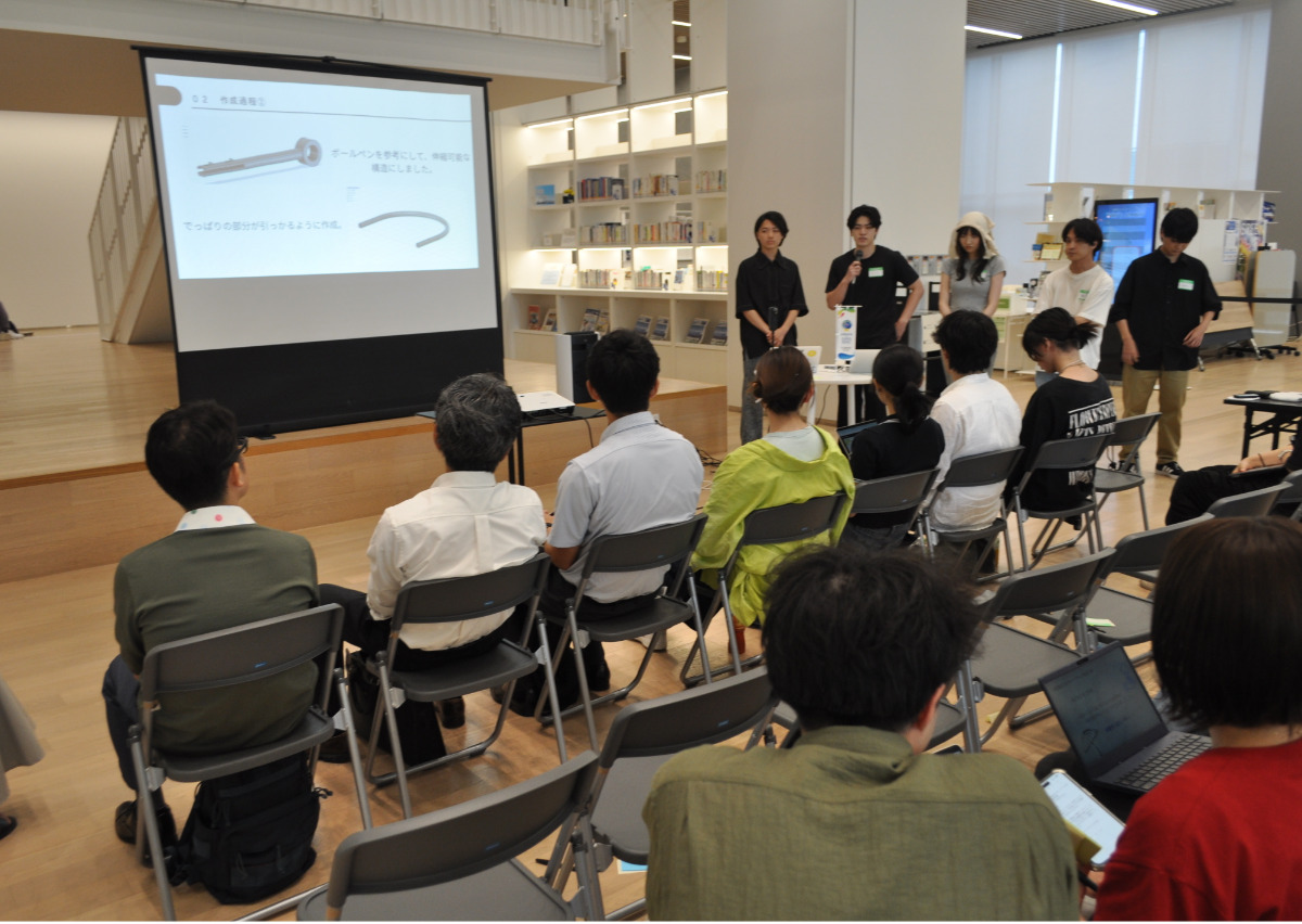 最終プレゼンでは、5チームに分かれてプロダクトを発表。つけ外しが簡単で着せ替えも可能なキャップ、サンバイザーやカチューシャ、ポンチョを組み合わせた新形状の製品、涼やかなデザインで通気性にも優れた浴衣、濡らすことで暑さを和らげる傘など、個性豊かなアイデアが次々と披露された。