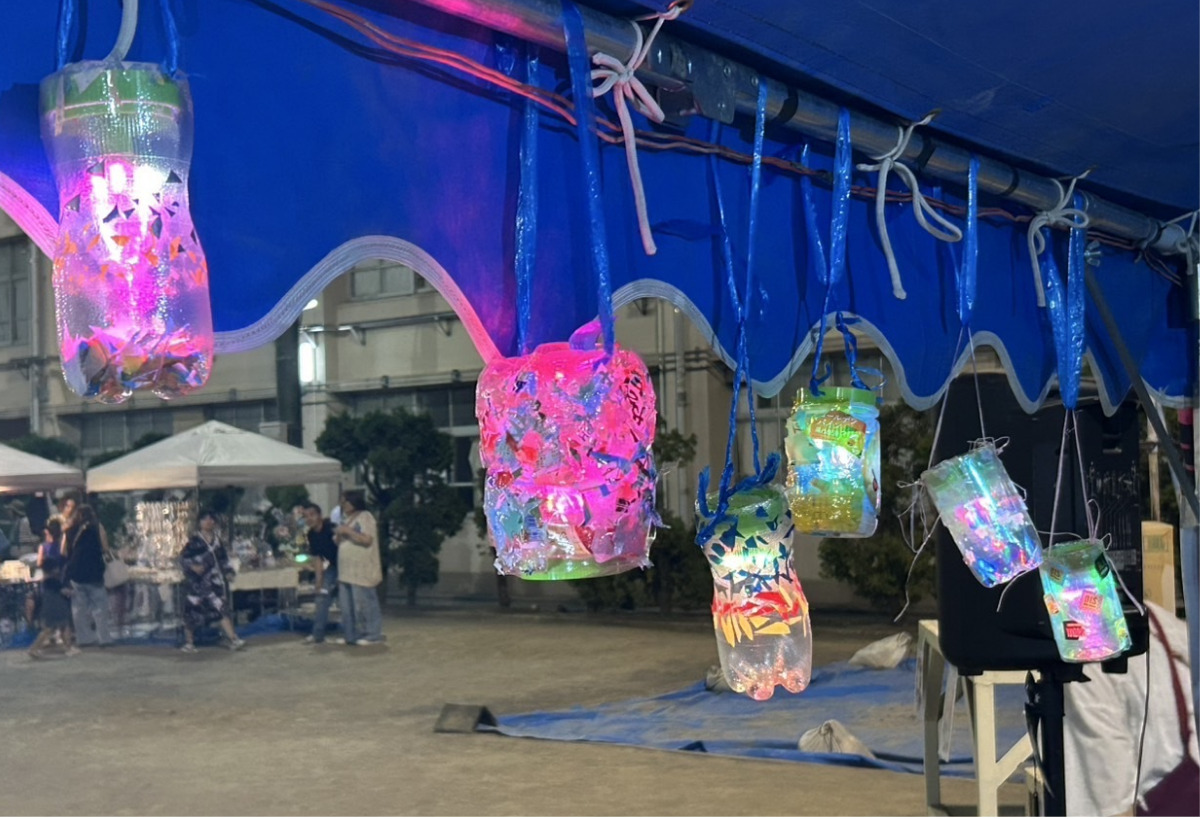 この取り組みは総合的な学習の一環。最初はプラスチックごみに着目し、アクセサリーなどを作成していた。地域の人たちとつながりたいという思いもあり、手作りのランタンで祭りに参加することになったという。