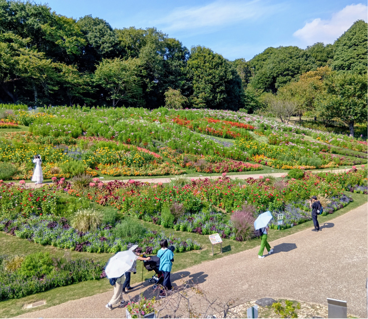 9月26日に近隣から訪れていた2人は、「何度も来場している。毎回、凝った作りの花壇を観ることが楽しみ」「初めて来ました。花がきれいで写真映えしますね」とそれぞれ楽しんでいた。