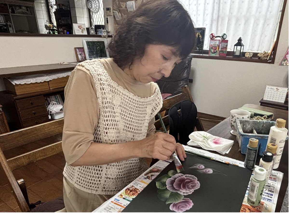 約30年前、梶山さんは友人からの誘いを受け絵画教室に通い始めた。師である谷野夏絵さんの提案もあり、認定講師の資格を取得。阿久和地域ケアプラザで長年ボランティアや、阿久和向原第二公園のトイレの壁面アートを手がけるなど活動してきた。「活動を通し、人生の先輩から学べる貴重な時間だった」と振り返った。