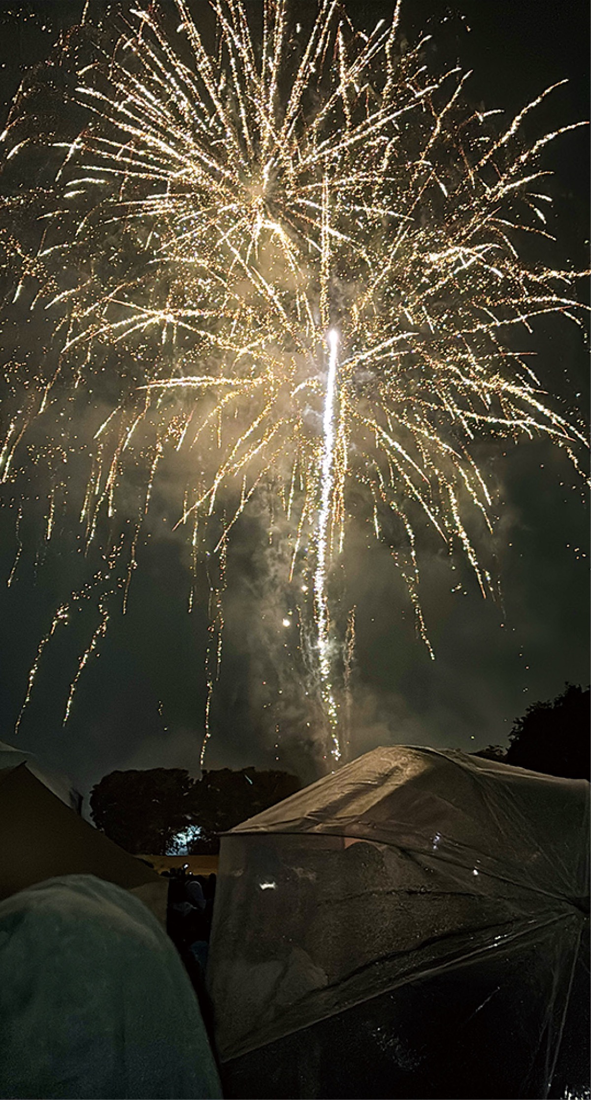 10月11日の秋まつりでは、雨模様にもかかわらず、2000発以上の花火が夜空を彩り、会場を埋め尽くした人たちが大きな歓声を上げた。