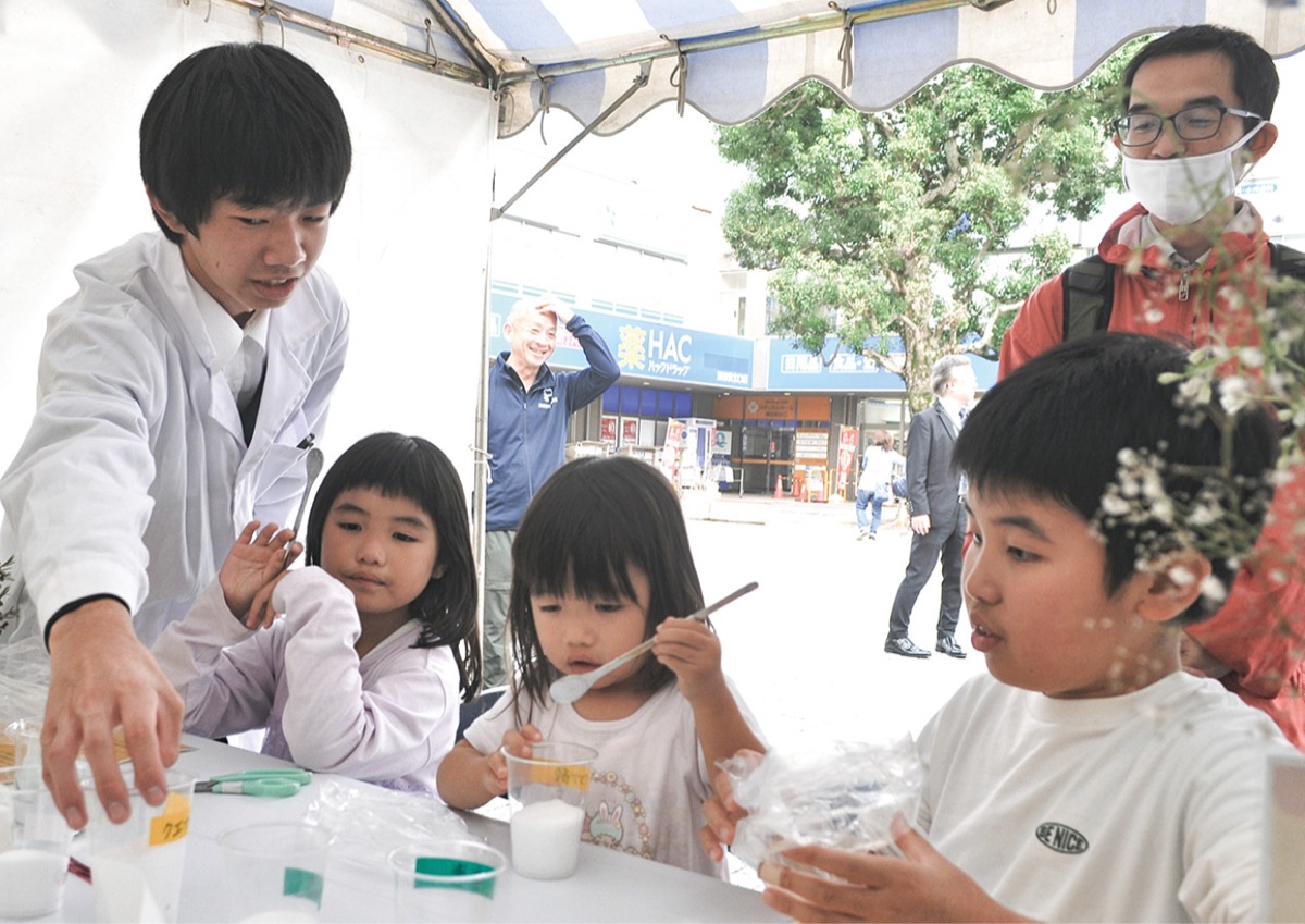 「花×環境」がテーマのワークショップでは、結婚式場で使われた花を再利用し、バスボムを作成。参加した子どもたちは、横浜隼人中学・高校の生徒たちの指導を受けながら、オリジナルのバスボム作りに励んだ。