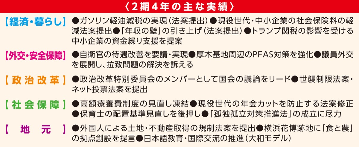 「地盤・看板・カバン」が無い中、国政への挑戦を始めてから10年。朝早くから通勤・通学される皆さんの姿に励まされ、雨や雪の日も毎朝欠かさず街頭に立って地元の声を聞いてきました。地域を隈なく歩き、毎月、各地で草の根タウンミーティングを開催して地域での対話を重ねました。そして国会議員として4年間、地元の声を国に届け、建設的な提言を積み重ねました。批判や対立に終始することなく、是々非々で国会論戦に臨んで政策を実現してきました。