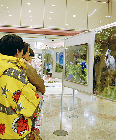 買い物客ら来場者は、近所の公園で撮影された草花や鳥などの写真をながめ「あの公園にこんな鳥もいるんだ」と話すなど、今まで知らなかった近隣の風景を発見していた。