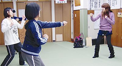 善道館で1月17日、護身術の動きを取り入れたエクササイズ「護身道エクササイズ」教室が開かれた。