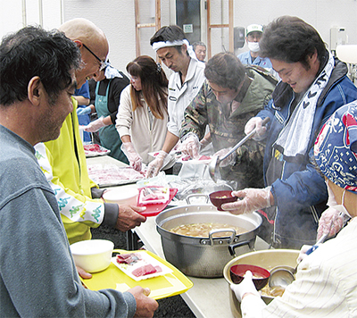 6月26日には、露木代表と、露木俊宏さん(34)、滝沢章光さん(32)、飯野憲一さん(31)が4回目の支援に現地に赴いた。これまでは自分たちの資金で食材などを購入していたが、今回は瀬谷駅や三ツ境駅前で募金活動を実施。集まった約14万円を活動資金に、食器やタオル、Tシャツなどの支援物資を届けたほか、刺身定食などの炊き出しを行った。「回を重ねるごとに、現地の人とコミュニケーションをとれるようになってきた」と露木代表。「段々と避難所で生活する人も減っている。今後の支援方法を検討しながら、これからも継続して支援していきたい」と話している。