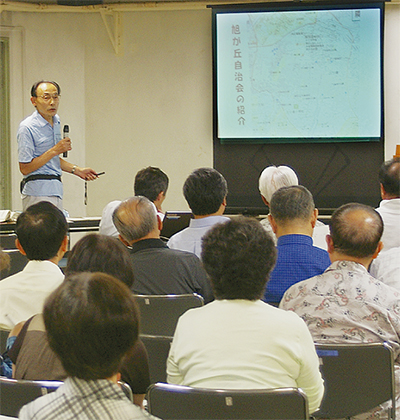 説明会では旭ヶ丘自治会(山口勇喜雄会長)の防災知恵袋を使った防災対策を例にあげ、要援護者への支援体制づくりの説明を行った。同自治会では2005年に町内の危険箇所や避難場所、災害時に役立つ地域資源を調査し、防災マップを作成したほか、07年から2年ごとに、防災支えあいカードを配布、回収した。