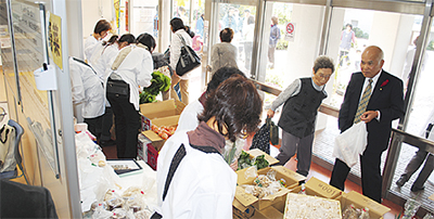 当日は好天に恵まれ、朝10時のスタートを前に行列が出来るほどの盛況ぶり。会員らが持ち寄ったタオル、シーツ、地場野菜、手作り品などが売れ、収益は更生保護施設などへの寄付にあてられる。石川会長は「今年は会場が変わったが、皆さんのご協力で無事この日を迎えられた」と会員や関係者への感謝の気持ちを述べていた。