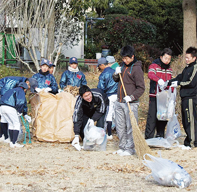 横浜隼人高校硬式野球部の部員が12月26日から1月14日の間、区内の公園や施設などでボランティア活動を行った。