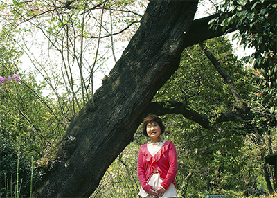 内田さんは「もらった当時からは想像できないほど立派な木になってびっくり。同級生もみんな植えたと思うけどこんなに大きくなったのは少ないんじゃないかな」と笑顔で話し、「成人式の時は母が作った着物で出席したことを思い出します」と桜の木を見ながら当時を懐かしがっていた。