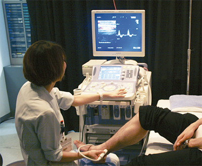 横浜市では、国民健康保険における「医科総医療費」に占める生活習慣病の医療費が約3割を占めており、特に近年は「糖尿病」の医療費の伸びが顕著となっている。 さらに2008年に義務化された「メタボ検診」に対する市民意識も向上。こうした流れを受け同院では、抹消血管(頸動脈、下肢動脈)の疾患に対して、本人にも自覚がない段階で発見しようというスクリーニング検査を昨年からスタート。外来希望者や入院患者を対象に年間100人以上の検査を行ってきた。