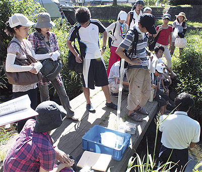 東山の水辺(宮沢二丁目付近)で8月22日、瀬谷区小学校理科夏期臨時研修会が行われた。