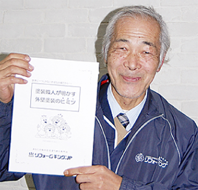 地元横浜の塗替え専門店「リフォームキング」工事責任者横澤さんは「外壁塗装は最低3社以上から相見積りをとることが大切」と断言する。「料金は重要ですが、比較のポイントは工事内容、保証システム、アフターサービスの内容です。そして”どうしてこの価格になるのか”という、裏付けも重要。更に自社職人か、下請けか。下請けの場合、コストの面で職人のやる気が違い、仕上がりに直結してしまうためです。また塗装回数や工程ごとの検査、塗料の確認ができるかなども条件です」と話す。