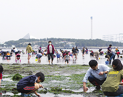 ねらい目は潮の引きが大きい日で、最大干潮時刻の前後2時間くらい。干潮時刻表は同公園ホームページ(【URL】http://www2.umino-kouen.net/facilities/shiohigari/)で確認できる。問い合わせは【電話】045・701・3450へ。