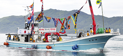 と感謝をことばに表した。 露木会長は「この1年間苦労あったが大槌湾内を走る瀬谷丸の姿を見て吹き飛んだ。世界で一つの船、この船で頑張っていただきたい」とあいさつした。