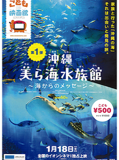 第1弾は『沖縄美ら海水族館〜海からのメッセージ』。内容は、水族館を舞台に飼育員の父とその家族の物語。美しい沖縄の自然や生き物が登場する。上映時間は短めの60分で暗くなりすぎず、音量も小さめで、少しくらい騒いでも安心だという。2歳以上中学生以下500円。高校生以上は1000円。