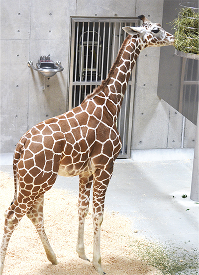 2頭のキリンは、アメリカ・テキサス州にある「グラディス・ポーター動物園」から来た、エマ(2歳3カ月)とカルメン(10カ月)でともに雌。2015年春に全面開園する「アフリカのサバンナ」での展示に向けて来園した。