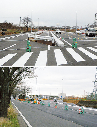 環状4号線は、金沢区六浦一丁目から青葉区鉄町に至る約36・6Kmの環状道路。今回整備が行われたのは、戸塚区の国道1号線の北側約23・2Kmのうち、唯一の未整備区間だった。整備事業が立ち上がった2012年度から工事が進められ、全長約450m、幅18〜25m、両側には幅2・5mの歩道が整備された。海軍道路方面から市道五貫目第33号線(八王子街道)への流れを変えることにより、周辺道路で慢性的に発生している渋滞を緩和する目的だ。