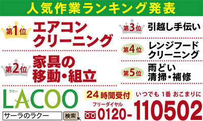 新生活に合わせたプチリフォームや家具の組立・移動・固定、階段・浴室等への手すり設置などでも頼りになる。エアコンクリーニングは今がおすすめ。照明の交換や庭掃除といった細かい作業も歓迎。空き家の定期管理、不用品回収も。