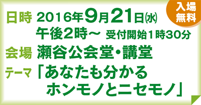 会場は瀬谷公会堂講堂(相鉄線「三ツ境」駅下車徒歩10分)。入場無料で定員は申込み先着順450人。申込み締切は9月9日(金)(定員に達した場合は9日前でも締切)。