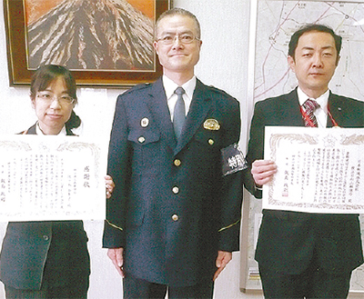 瀬谷警察署(飯島政則署長)は12月7日、振り込め詐欺被害を未然に防止したとして、横浜日向山郵便局と、横浜瀬谷西郵便局で窓口担当の佐々木由季子さんに感謝状を贈った=写真。