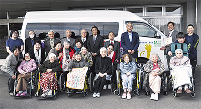 車両は10人乗り。車いすを2台積載でき、リフトによって昇降する。納車を受けて今月11日にはお披露目式が開かれ、施設利用者や関係者などが出席した。平本理事長は「新しい車は、これまでのものより室内が高く広い。有効に活用できれば」とコメント。同会では今後、愛成苑を含めた3施設で車両を使う予定だという。