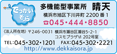 障がいがある人に寄り添い、生活訓練や就労支援、居場所づくりなどを行う「NPO法人でっかいそら」(飯田誠理事長/瀬谷区)。同法人が旭区下川井町で運営する「晴天」がこのほど、「多機能型事業所」としてリニューアルした。