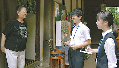 2人は紙面作りを学んだ後、取材に同行。開館25周年を迎えた長屋門公園を訪問し、同園の清水靖枝さんに話を聞いた内容を記事にまとめた。