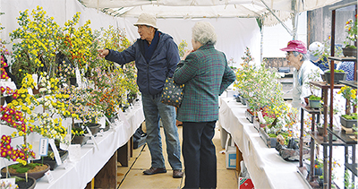 展示期間の前半で来場者に投票してもらい、会員らによる投票とあわせて各賞を決めるのが同展の特徴。来場者の人気を集めたのは116票中22票を集めた山口勝己さんの「みかど」で、石付け五幹というタイプの作品。「花が同時に、きれいに咲いているかなどもポイント」と大野会長。会員らの1年間の頑張りを評価し、来年への期待を込めた。