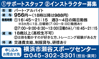 瀬谷区のスポーツ・健康づくりの拠点となっている「瀬谷スポーツセンター」では現在、スタッフを募集している。