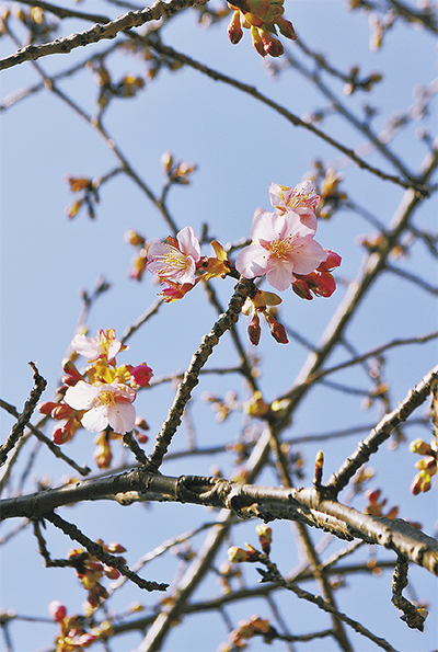 早咲きの品種として知られる「河津桜」が、区内の境川上流で開花し始めた。