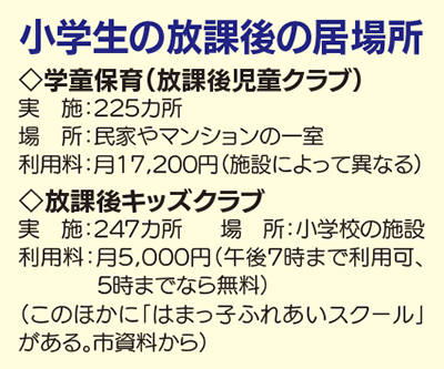 現在は225カ所あり、市こども青少年局によると、17年4月時点で約1万700人が利用し、この数年は横ばい。利用料はクラブによって異なるが、平均で1カ月1万7200円。