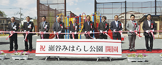 県営住宅細谷戸ハイツの再整備跡地に造られた「瀬谷みはらし公園」の完成記念式典が今月8日に開かれ、来賓や関係者が開園を祝った。