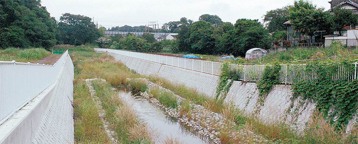 瀬谷区の瀬谷市民の森を源流とし、泉区を南下しながら、戸塚区の俣野町で境川に合流する和泉川。市では台風などでの豪雨による河川の氾濫を防ごうと、71年から改修工事を続けてきている。