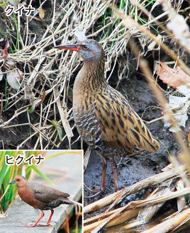 クイナ(水鶏)鳴くは、俳句の世界では夏の季語で「一つ家を毎晩たたく水鶏哉」と正岡子規の句にも詠まれている。唱歌「夏は来ぬ」にも唄われ良く知られた鳥であるが、その姿を目にした方は少ないのでは。
