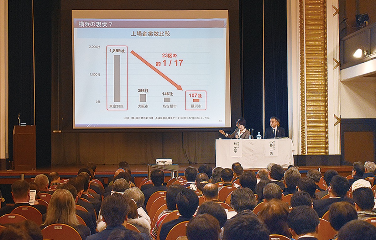 横浜市は、カジノを含むIR(統合型リゾート)の実現に向けた市民説明会を12月4日、中区の開港記念会館で開催した。候補地・山下ふ頭がある中区が最初の開催地となった。400席以上ある会場はほぼ満席。林文子市長が横浜市の厳しい財政見通しやIR誘致による経済効果などを説明した。質疑ではカジノに対する不安の声が多数寄せられ、林市長は「丁寧に説明し理解を得ていく」と繰り返した。