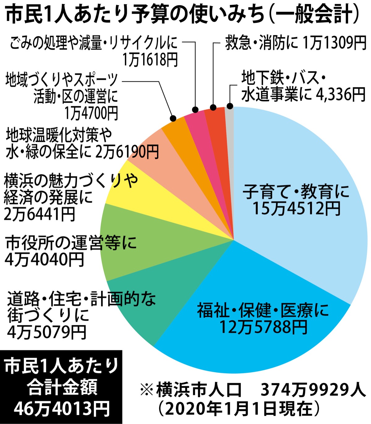 他にも東京五輪・パラリンピックの円滑な実施に12億4200万円、将来に向けた医療機能の確保に4億6900万円、現市庁舎跡地利用を含む関内関外の活性化に36億8500万円、中学校昼食「ハマ弁」の喫食率向上に11億9千万円、局地的な大雨などへの対策推進に100億1700万円をつけている。