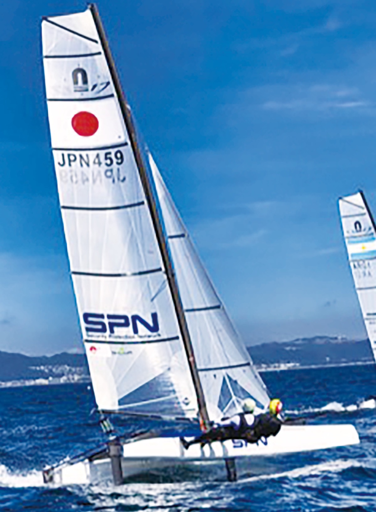 セーリングは風を利用した力で海上のヨットを走らせ、着順を決める競技。出場するのは長さ約5m、幅約2・5m、高さ9mの大型ヨットを男女のペアで操る「フォイリングナクラ17級(混合)」。時速は50Kmを超え、セーリングの8種目の中でも最速の種目だ。