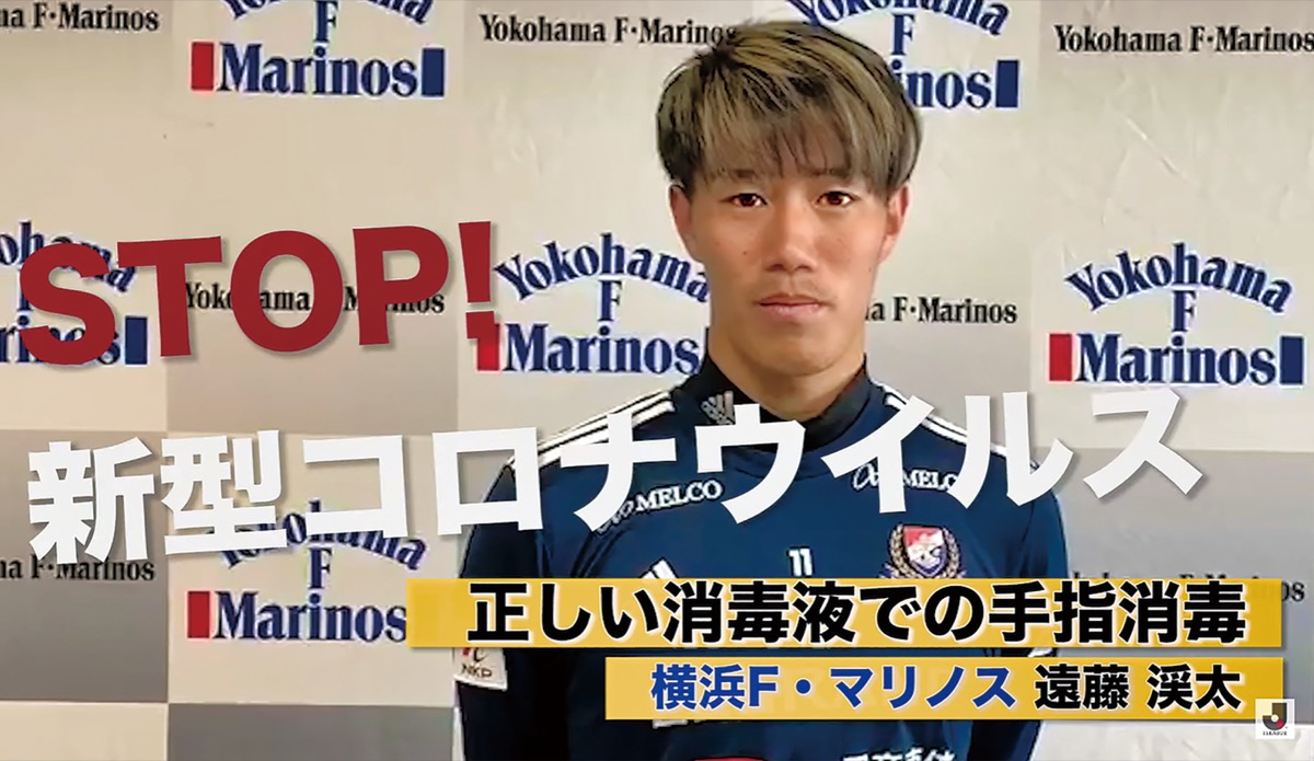 サッカーJ1横浜F・マリノスは、新型コロナウイルスの感染拡大防止啓発活動「STOP!新型コロナウイルス」の一環として、選手による「正しい手指消毒」の動画を制作した。また、再開を待ちわびるファンに向け、選手からのメッセージ動画も配信している。