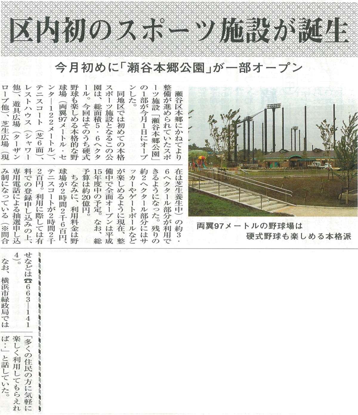 同年5月1日にオープンした瀬谷本郷公園。当時の記事によると、区内初の本格的なスポーツ施設で、総面積は5・6ヘクタール。野球場やテニスコート、レストハウスなどの約3・6ヘクタール部分が利用できるようになったとある。