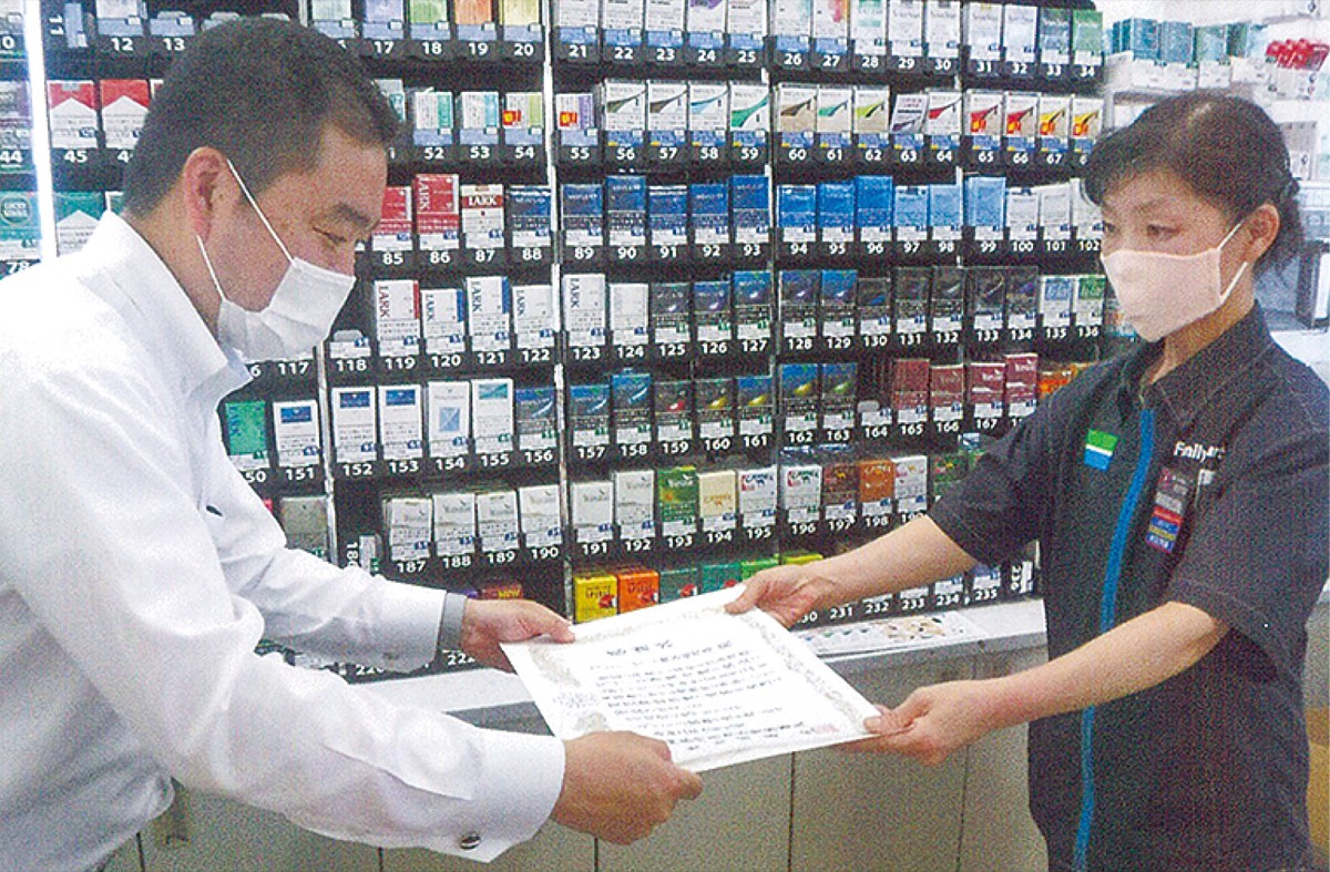 プリペイドカード購入による架空請求詐欺を防いだとして、瀬谷警察署は6月3日、ファミリーマート瀬谷相沢店に感謝状を贈呈した。