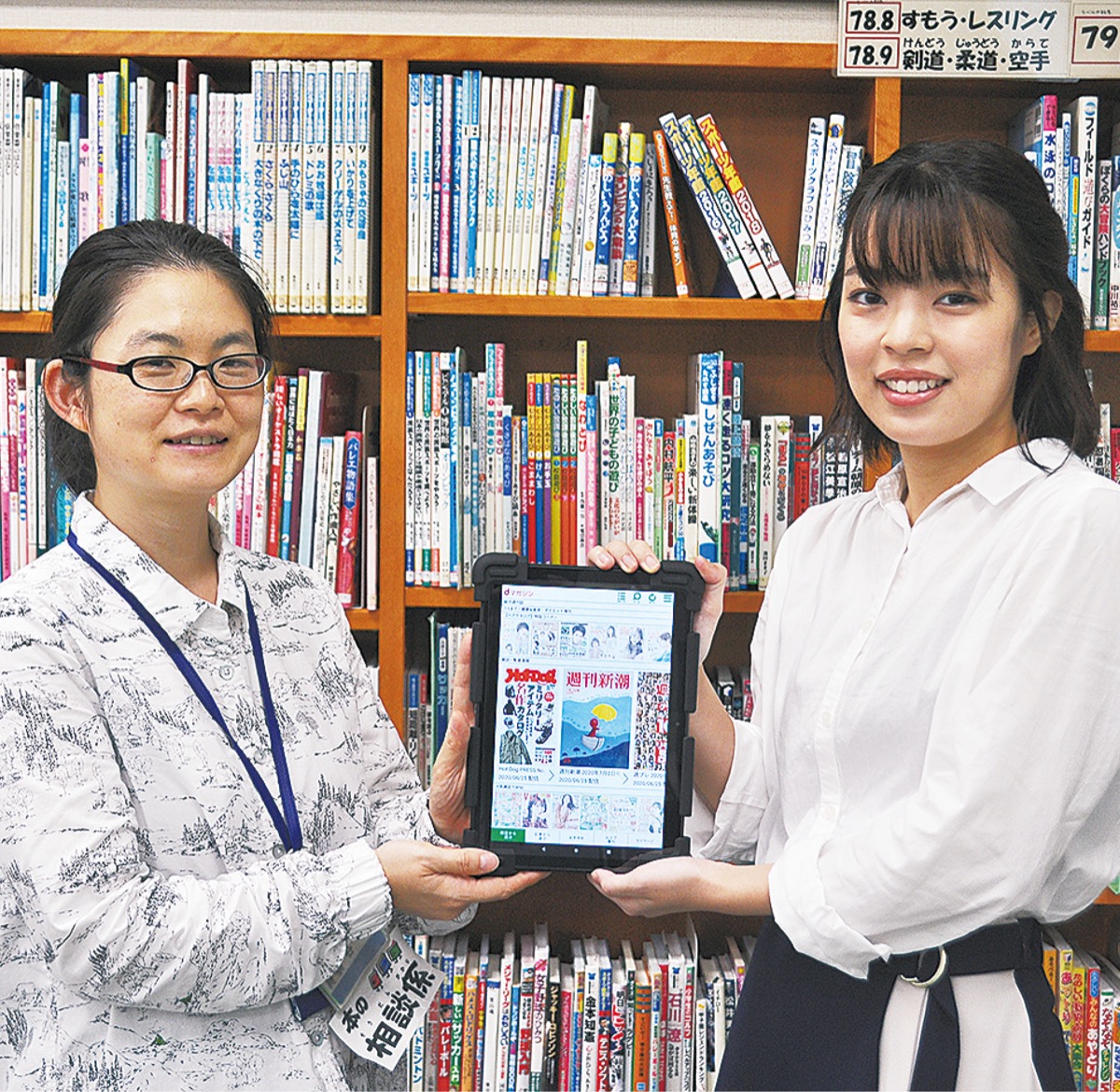 同館や区民協働推進係によると、電子書籍は文字の大きさを見やすく変更できたり、持ち運びが便利だったりと様々な利点がある。その一方で、タブレットやスマートフォンが苦手な人からは敬遠されやすく、こうした人たちなどにも気軽に楽しんでもらおうと、今回のサービスを始めることになったという。