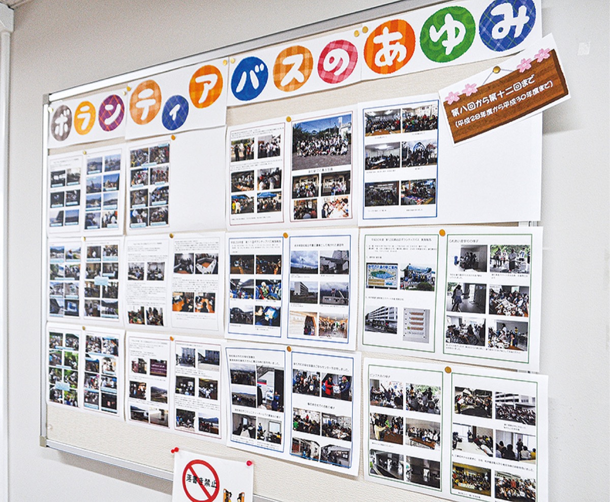 瀬谷区社会福祉協議会が企画し、高校生などが参加してきた「ボランティアバス」。その活動写真などが3月末まで、せやまる・ふれあい館2階で展示されている。