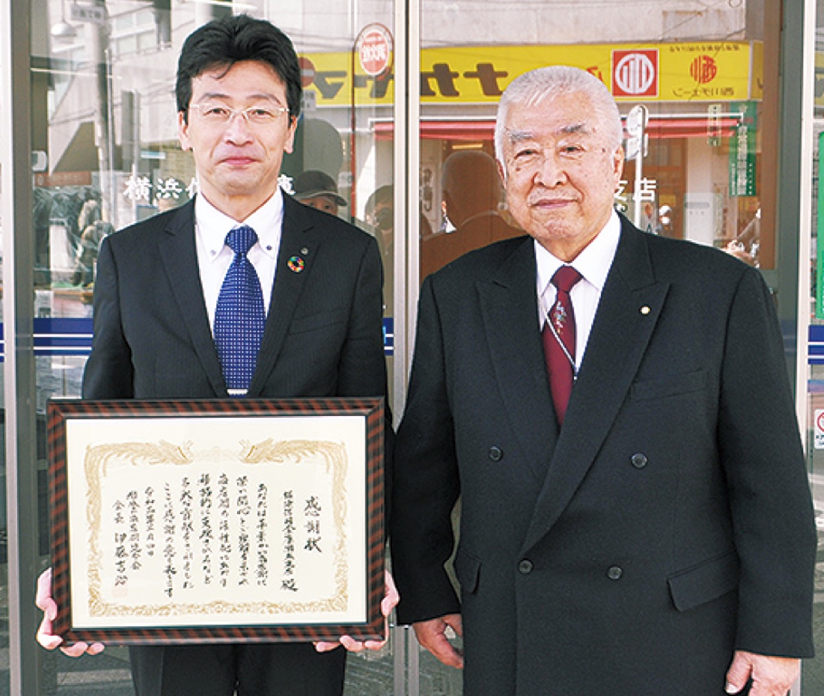 4日は関係者が集まり、完成を祝った。「私たちは地域あってこその企業」と山地支店長。マップ制作に対して感謝状を贈呈した、瀬谷区商店街連合会の伊藤吉治会長は「素晴らしいマップです。瀬谷駅南口の再開発と合わせて、商店街の活性化と集客効果に期待したい」と感謝の気持ちを述べた。