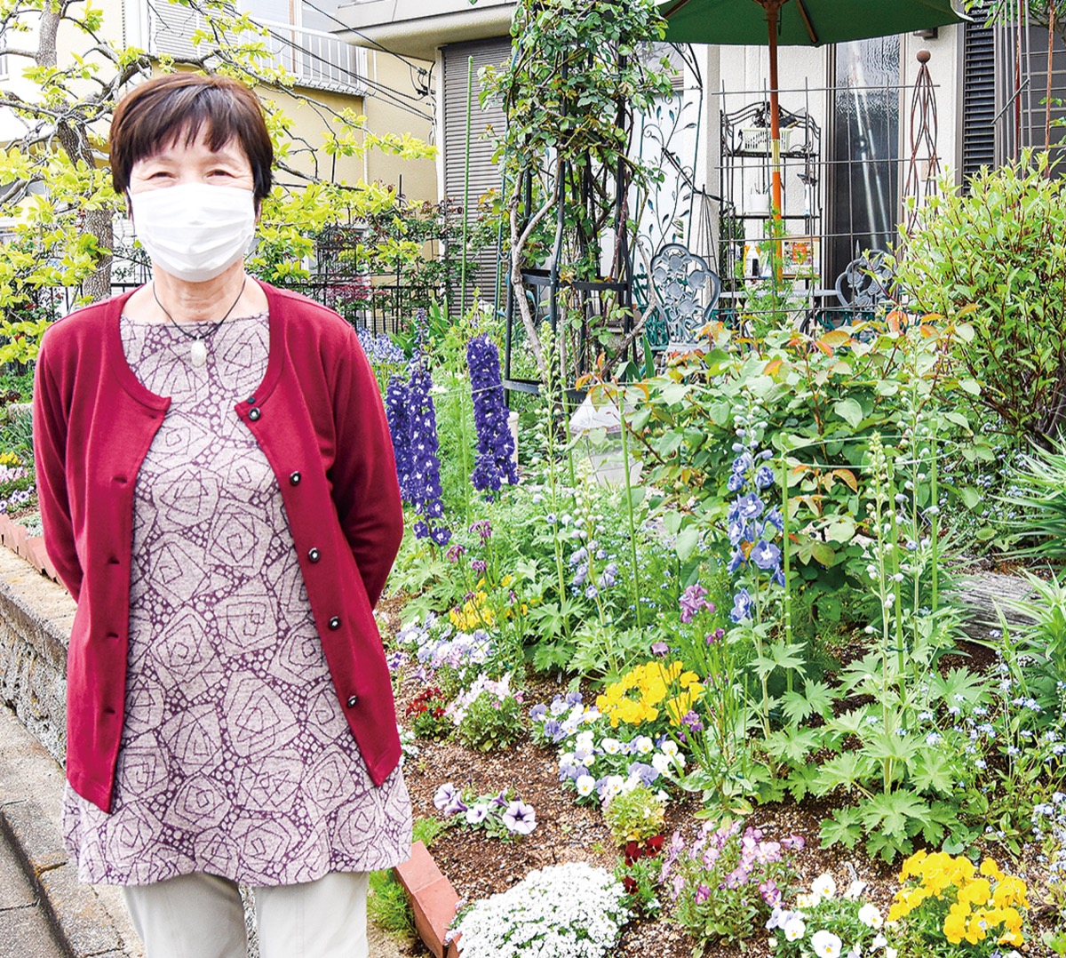 兵藤重子さん(阿久和東2の49の8)の庭では、デルフィニウムが見ごろを迎えた。柔らかく良質な土づくりや花々のメンテナンスに注力しており、17年から毎年参加し続けているという兵藤さんは「土や花のことについてお世話になった恩師へ感謝の気持ちを込めて参加しています。オープンガーデンで更に瀬谷を盛り上げられたら」とし、「5月の開催ではバラが見ごろに。様々な花を知る機会になれば」と話した。