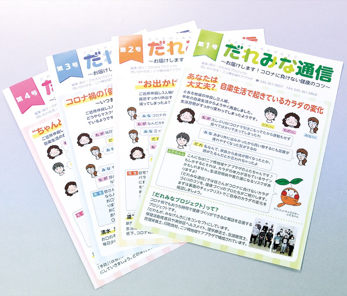 地域ボランティアや専門家、印刷会社、二ツ橋地域ケアプラザで構成されている「だれみなプロジェクト」がこのほど、自宅などで取り組める健康づくりの情報紙「だれみな通信」を発行した。4月から6月にかけて体の変化、体力づくり、口の健康、食事と栄養の4テーマについて発信している。