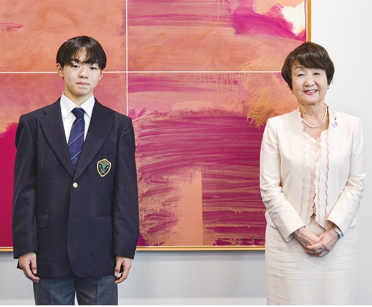 3月のフィギュアスケート世界選手権(スウェーデン)で銀メダルを獲得した鍵山優真選手(18)=星槎国際高校横浜=が5月18日、横浜市役所で林文子市長に成果を報告した=写真。