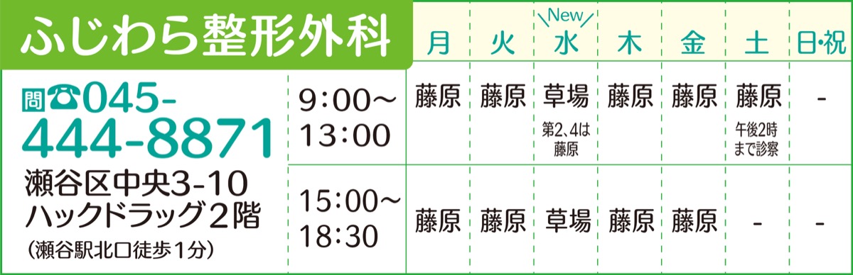 瀬谷駅北口のふじわら整形外科(藤原稔院長=写真)は11月から新たに医師を迎え、休診日だった水曜日の診療をスタート。月曜日から土曜午前まで途切れない医療を届ける方針だ。